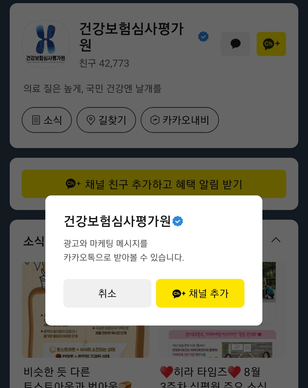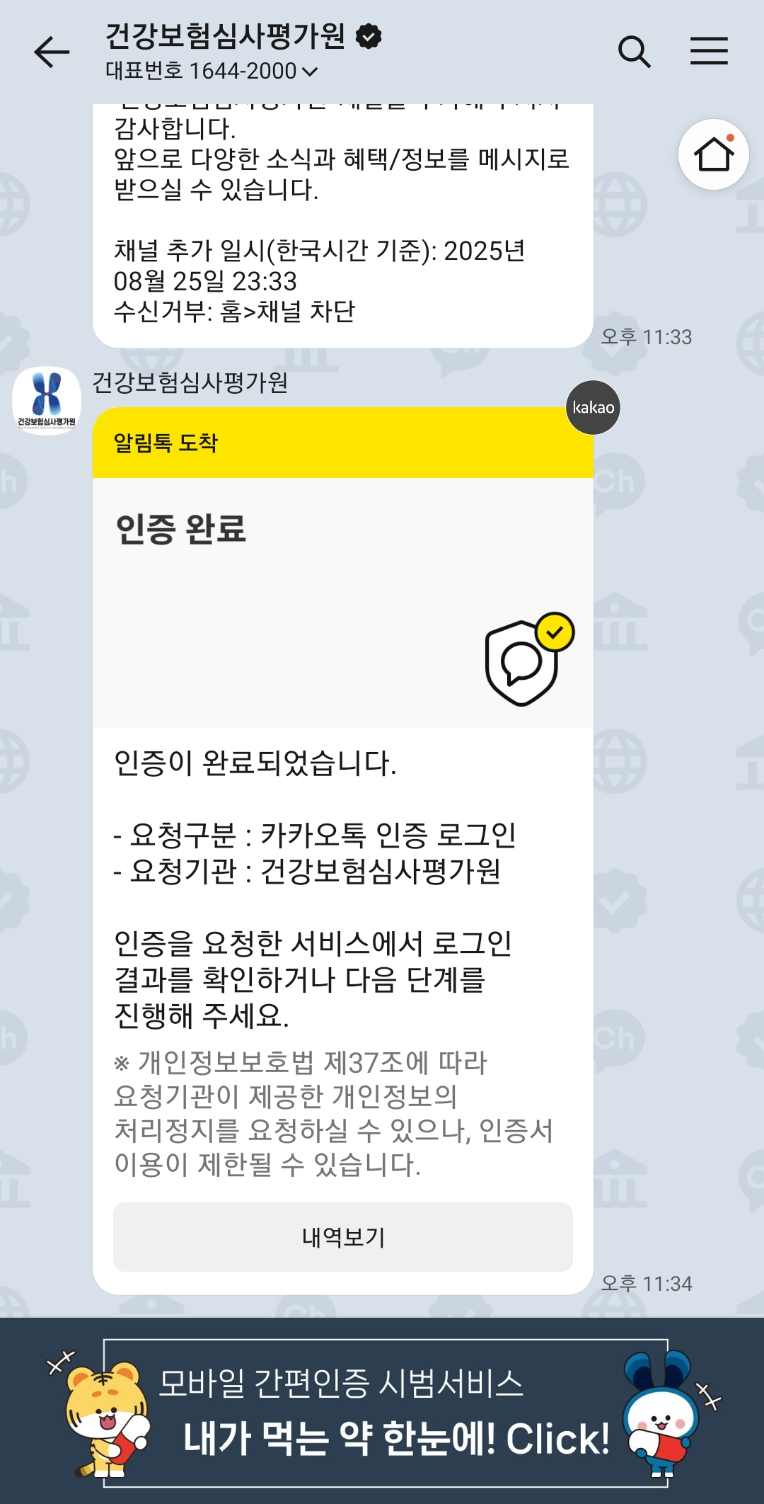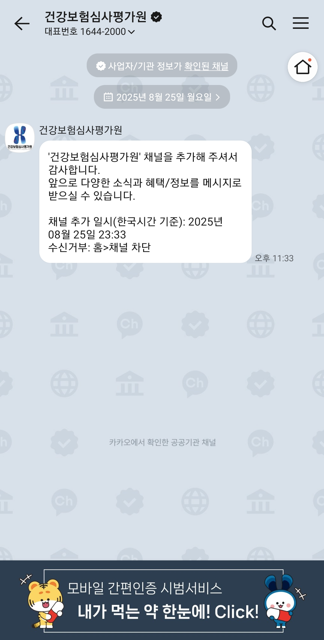 - 카카오톡에서 ‘건강보험심사평가원’ 알림톡 채널 접속