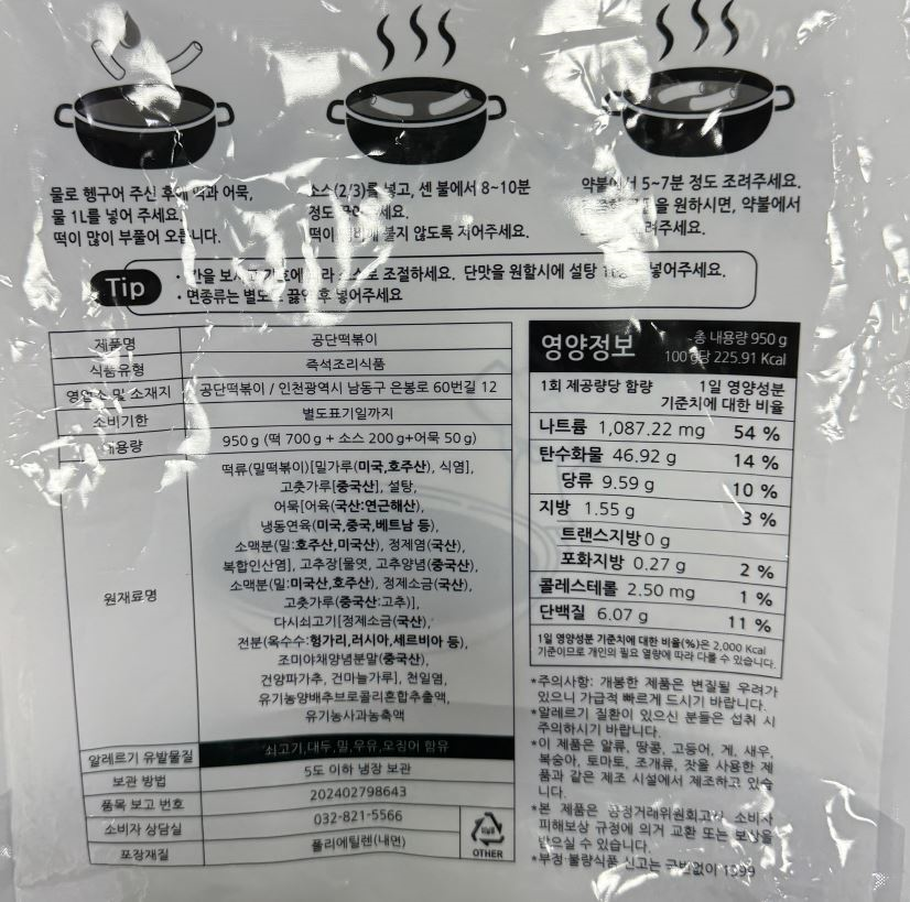 공단떡볶이 (즉석조리식품) |