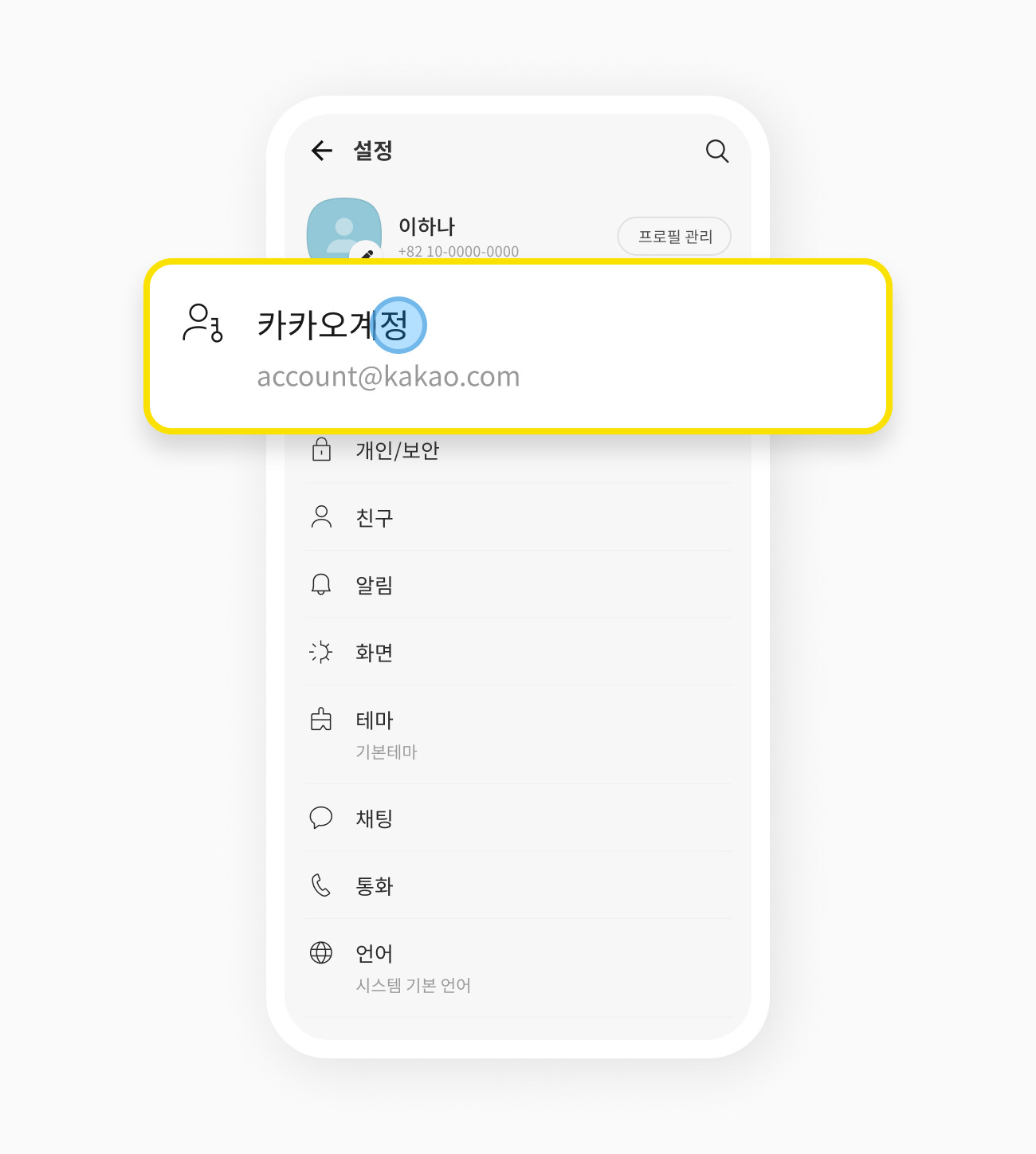 2. 설정 메뉴 맨 위에 있는 [카카오계정]으로 들어갑니다.