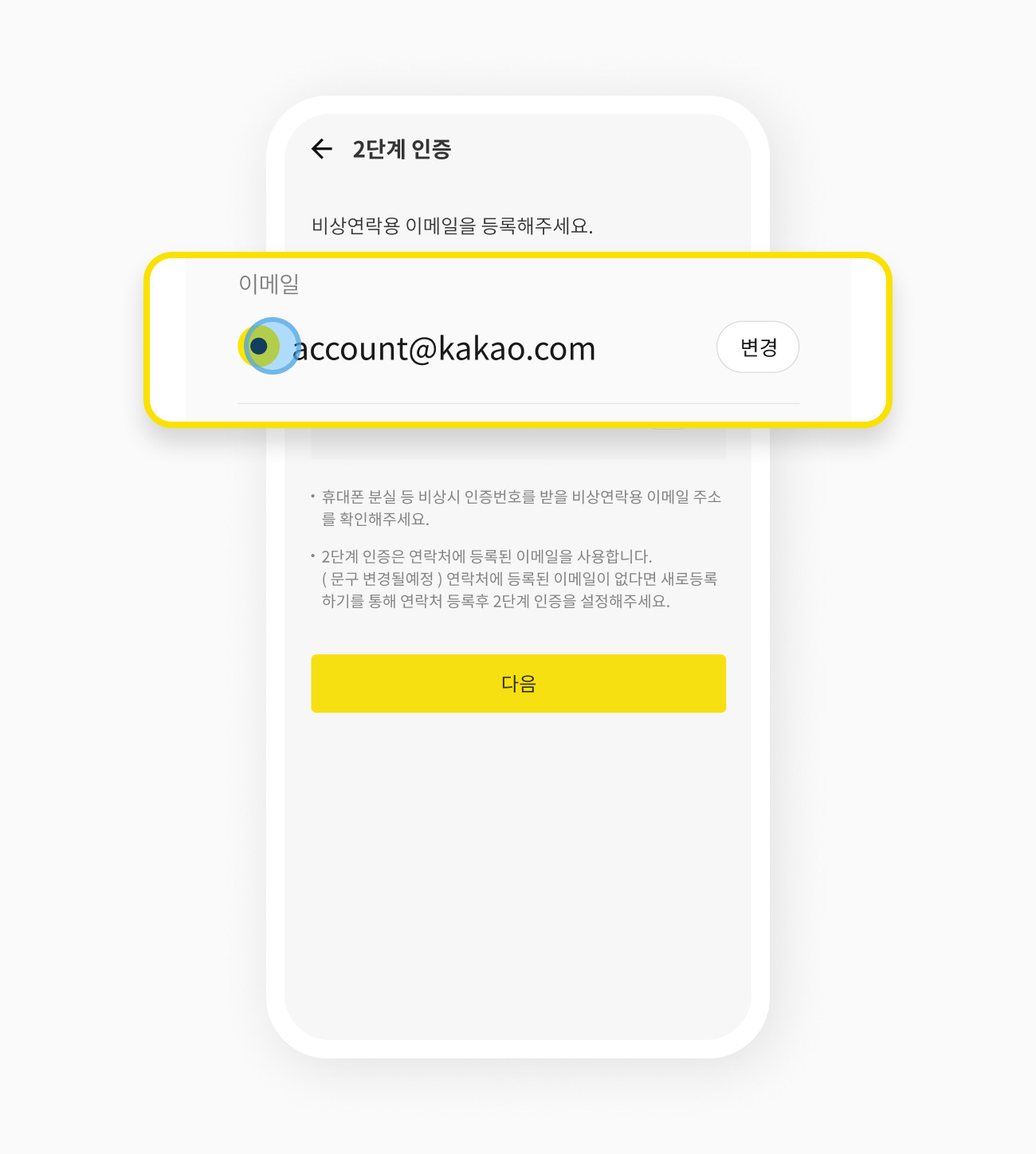 로그인 화면에서 [이메일로 인증하기] 옵션을 선택하고, 비상 이메일로 전송된 인증번호를 입력하면 간단하게 로그인할 수 있습니다. 로그인 후에는 반드시 [설정 > 카카오계정 > 2단계 인증] 메뉴로 들어가 새 스마트폰이나 변경된 번호로 인증 정보를 업데이트해주셔야 합니다.