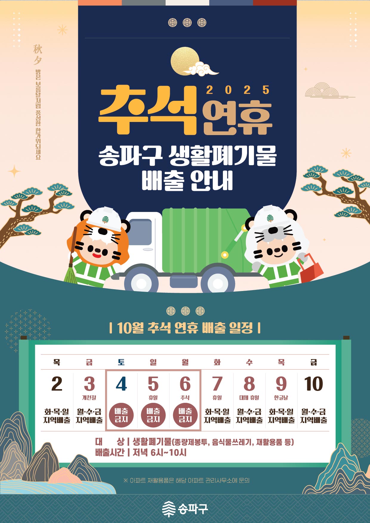 서울시 송파구 추석 연휴 기간 동안 생활폐기물 배출 일정이 일부 조정됩니다.